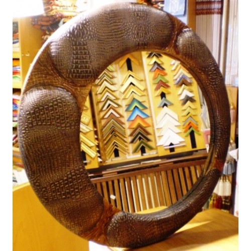 Specchio con cornice in vero pitone imbottito. Spettacolare. Pezzo raro!