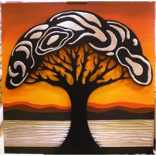 L'albero è "ritagliato" su di un pannello di legno, dipinto di nero e applicato al panello a 4 cm da esso, risultando in rilievo. Il pannello è dipintpo con colori acrilici.