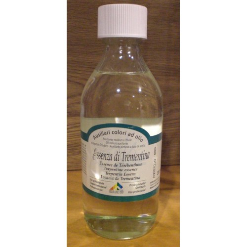 Solvente per la diluizione dei colori e la pulizia degli strumenti. Tende ad opacizzare i colori.